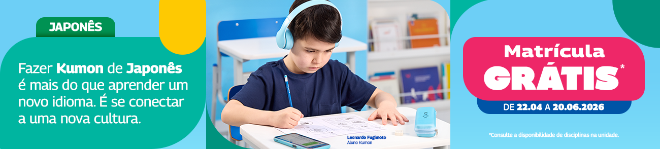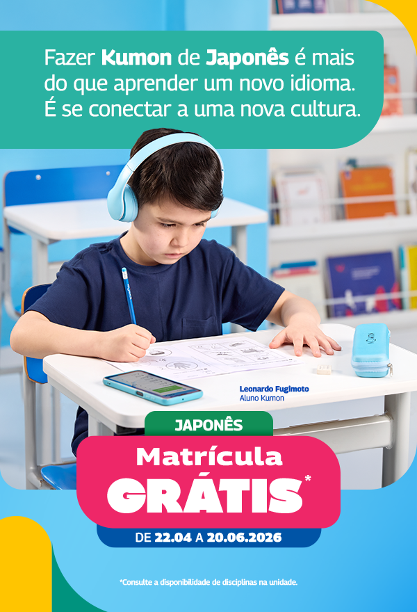 No curso de Japonês do Kumon, o aluno aprende a elaborar frases gramaticalmente corretas, a ler e interpretar textos diversos e a falar em japonês com a pronúncia nativa, adquirindo amplo vocabulário e compreensão auditiva.